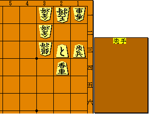 第29問(7月23日出題) どこにも玉が動けない形。でも詰ますには一つしかない。 盤上にない残りの駒は、相手は合駒として使えるので気をつけること。 |