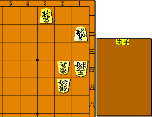 第148問 4三桂・同飛・2一金まで3手詰。 初手2一金は、同飛で失敗、3二桂成は同玉で脱出が止まらない。 初手4三桂が正解で、同香なら4一から金を打てば詰み、同金なら3二金と頭金の詰み、そして同飛は、図のように、今度は2一から金が打てる。 |