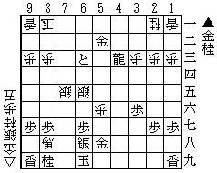 第491問(11月5日出題) 良くありそうな形だが難問。初手は3一銀か3二龍か?龍を切ったとすれば4三に何を打つかも大きな問題。 19手詰。10分で四段。 手筋1、2、4、35使用。 |