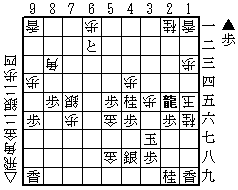 第471問 2三銀不成・同金・1二龍・1三歩・1五歩・同玉・1六歩・2五玉・1七桂・1四玉・2六桂まで11手詰。 銀を残したまま詰めようとすると、最後1三玉と落ちられてどうしても詰まない。そのじゃま駒を捨て1二龍を決めておくのが好手。後、注意するのは5手目桂が先だと打ち歩詰になることくらい。 |