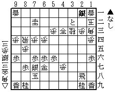 第470問 3三金・同桂・3二と(成銀)・1二玉・2一銀まで5手詰。 初手3二とと寄るのは1二玉で、金で精算しなければならない為詰まない。そこで3三金がちょっとした妙手。1二玉には2三飛成があるので同桂だが、そこでと金を寄れば銀打ちの場所があるという訳。 |