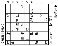 第547問(12月2日出題) 四枚落ちの下手に詰ませろと言うのはコクだが、長いだけで難しい手はない。手順を間違えず最後まで読み切れるかどうかだけ。 19手詰。10分で三段。 手筋46、40、34使用。 |