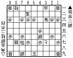 第554問(1月20日出題) 8七龍の利きは強力だが、持ち駒も豊富で強引に詰み形に持って行く。 15手詰。10分で三段。 手筋4、9、22使用。 |