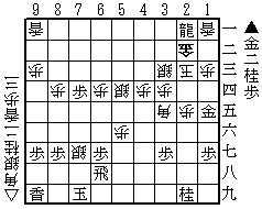 第560問(3月3日出題) 本物の実戦に現れた華麗な手順。短くやさしいが、それでも実戦で詰ませられれば有段者。 9手詰。10分で1級。 手筋4、11使用。 |