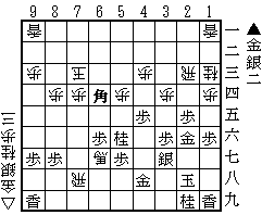 第643問 7三桂成・同玉・6四角(途中図)・8三玉・7二銀・同玉・7三金・6一玉・6二銀・5二玉・5三銀成・5一玉・6二金・4一玉・4二成銀まで15手詰。 紛れは唯一3手目に銀を打つかどうかだが、6四銀だと8三玉・6一角に7二桂合で詰まない。元々角から読む方が自然なので、8三玉に7二銀さえ発見すれば後は並べ詰みだ。 |