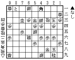 第690問 6四銀・6五玉・5四銀(途中図)・6四玉・6五金・同馬・6三龍・7五玉・6五龍・8四玉・8六香・9四玉・8五龍まで13手詰。 6四銀から入り、5四銀〜6五金と手筋の連発で詰み形を築く。逃げ方はいろいろあるが、8二龍と回れるため意外に狭い。 |