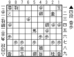 第18問 4二成桂・同玉・4三角引成・5一玉・6一金・4一玉・4二歩・3一玉・3二馬まで9手詰。 4二成桂と捨てて4三角引成と王手するしか詰みそうな筋はない。ただ、4手目4一玉には4二歩と歩が利くことをしっかり読んでおくこと。うっかり3二馬と王手すると5一玉で(実戦なら)大逆転となる。 |