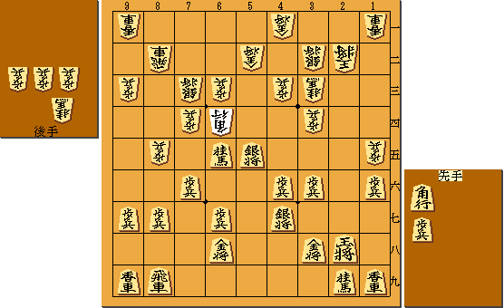 | (問623-2) 中盤から先手が徐々にポイントを重ね、終盤、先手優勢にまで進んでいる。とは言え、下図は△2七歩成と銀を取られながら玉頭にと金を作られたところでここを間違えると先手も危ない。ここではどのように対応したら良いか?盤面全体を見ながら、勝ちに持っていくための最も良い手順とは?三手まで。 |